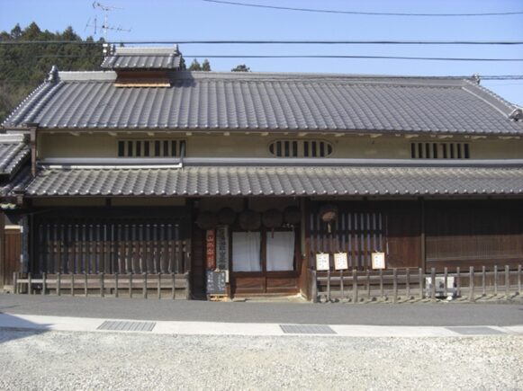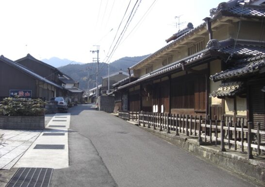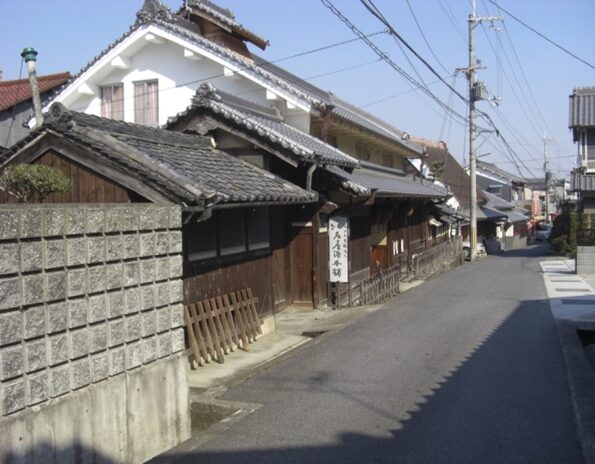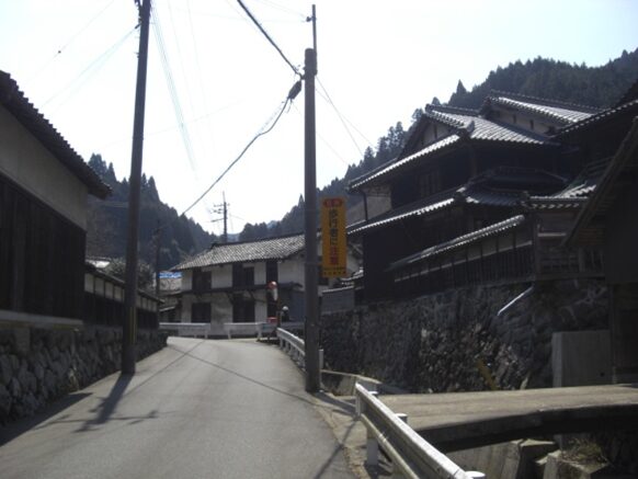 街並み中程右手に 元庄屋であった 酒醸造本舗 豪壮な立派な建物