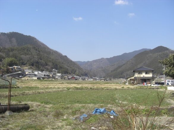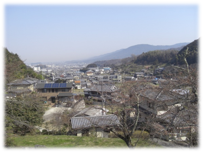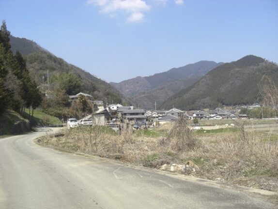 左に佐々羅地区、山口地区を望む大和街道の延長、伊勢南街道が抜けていく