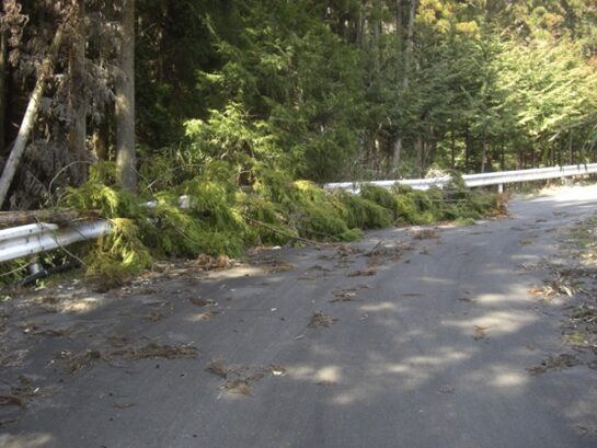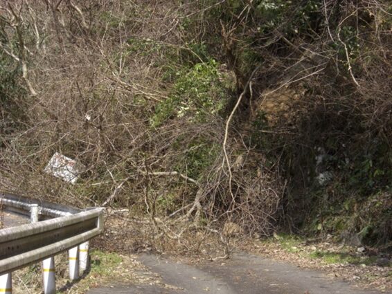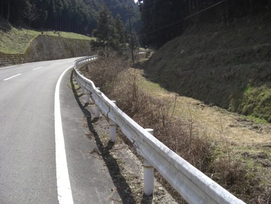 歩道のない新県道37号を下っていく。自動車数は多くないが、猛スピードで走る車があり注意が必要