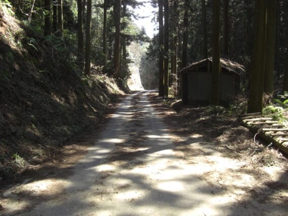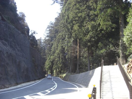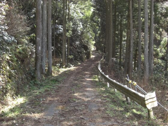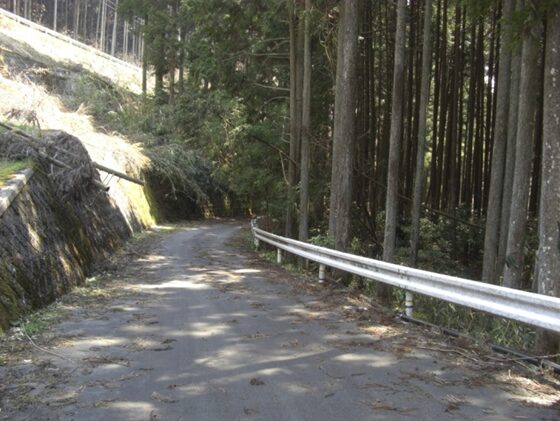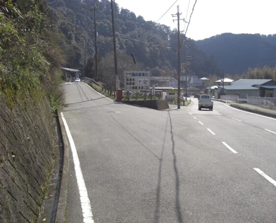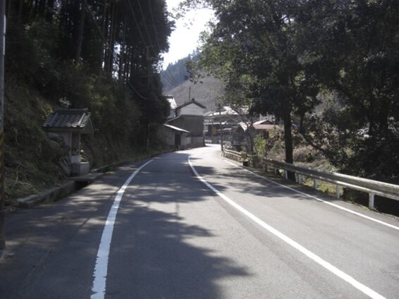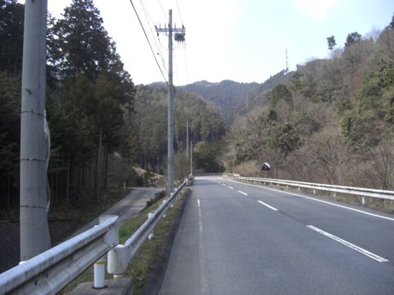 緩やかな坂を上り県道を右に分かれ横断して旧道を左に進む