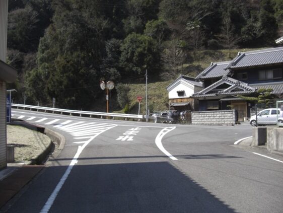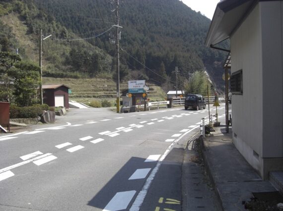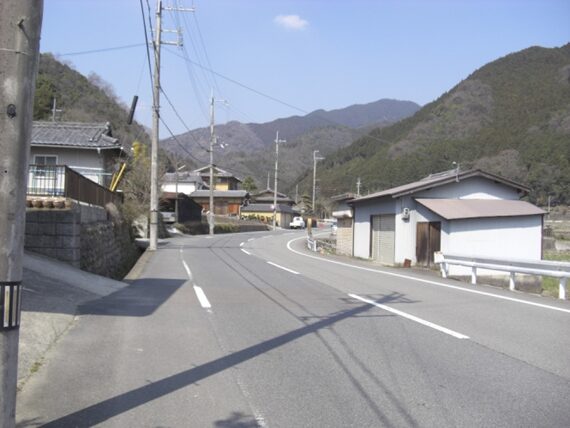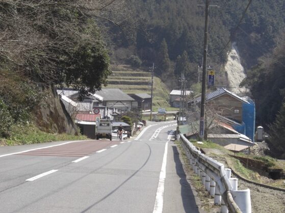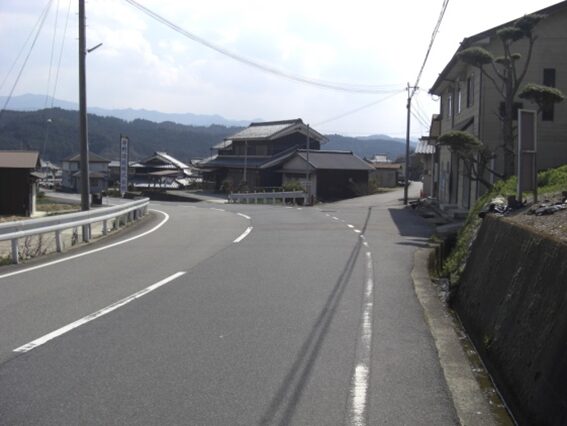 集落が途切れたところで、右側からの県道と合流左に進みます