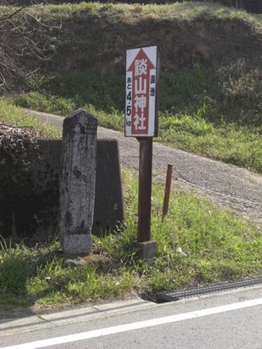 右に10m程の多武峰への道の右側に 道標を兼ねているのか塔 がたっています
