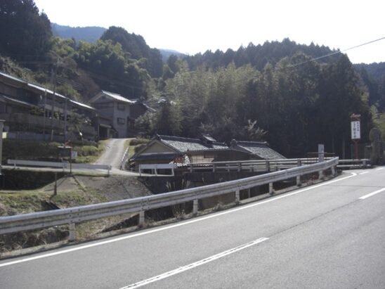 どんどん旧道を上っていくとバス停不動の滝。ここで県道を右に分かれ直角に左に、寺川に架かる橋を渡ります