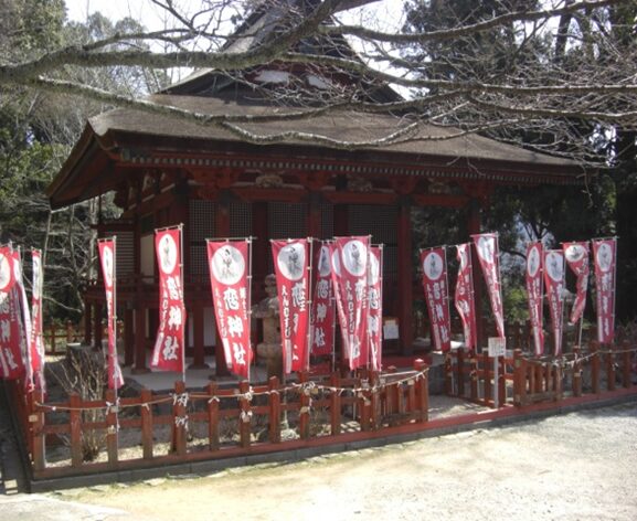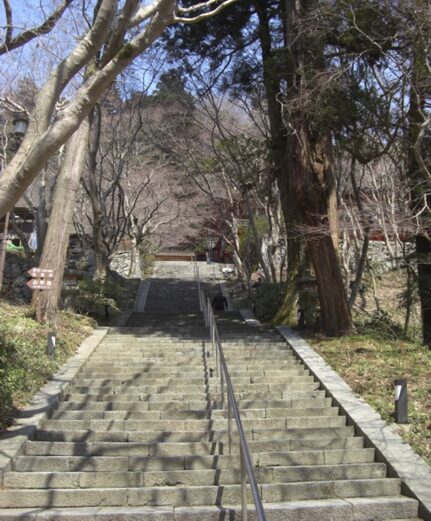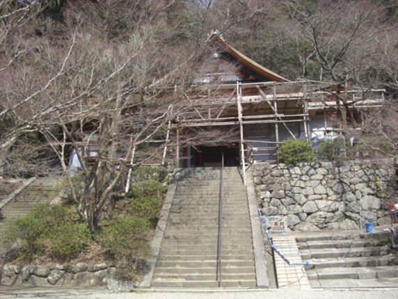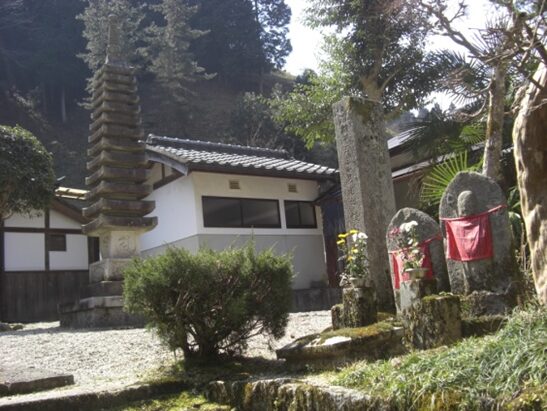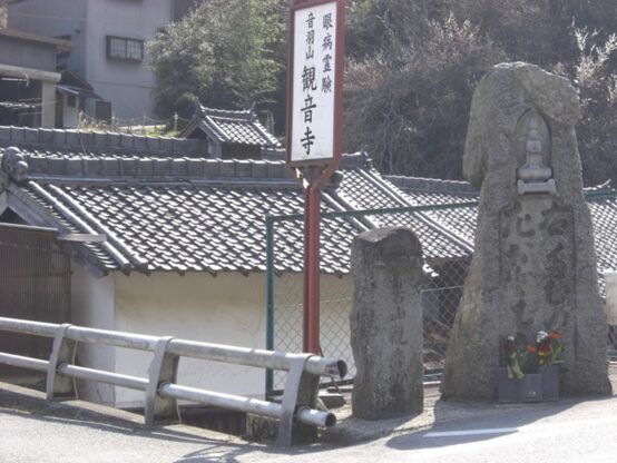 バス停下居の傍の、左手の寺川に架かる下居橋を渡り2km程登ると、音羽山の中腹に尼寺の 融通念仏宗音羽山観音寺 があります