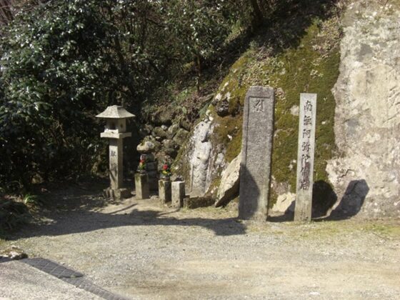 隣に 石碑や道標 が並んでいる南無阿弥陀仏岩