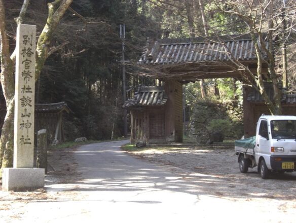 突き当たりを右に折れると、右からの県道に合流、目の前の山一帯が談山神社の森ここを左に折れると交差点に出ます