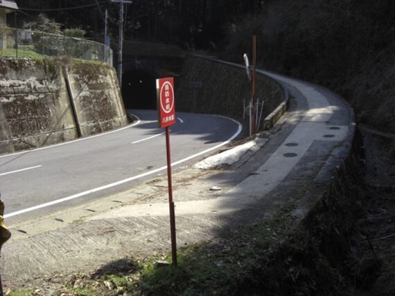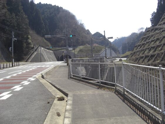 トンネルの出入り口を回り込み、右からの新県道に合流する旧道は通行止めになっているが歩くには差し支えがないようだ