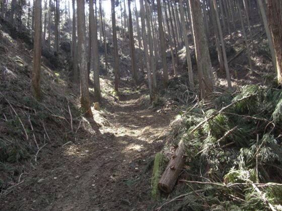 左鋭角に行けば大峠竜門岳へのやはり峰道、左斜めに進むのは下り 吉野への道。