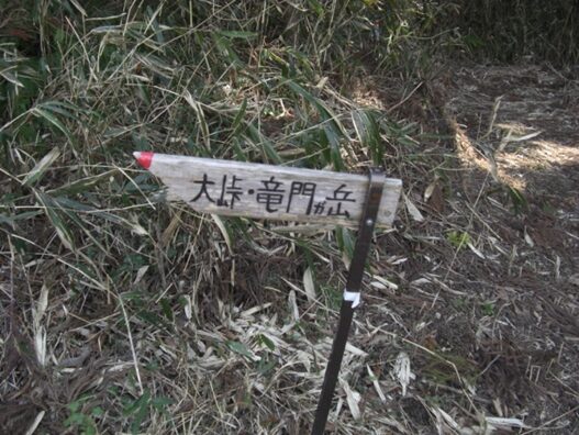 荒れているが登山道としての 大峠・竜門岳への道の標識