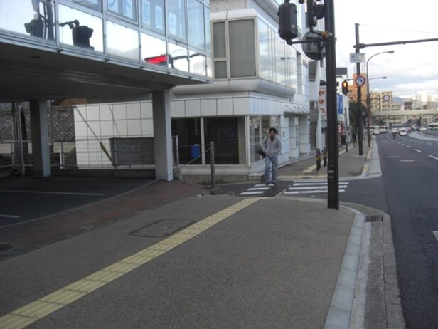 交差点を越えたところで振り返る