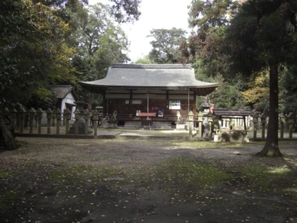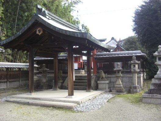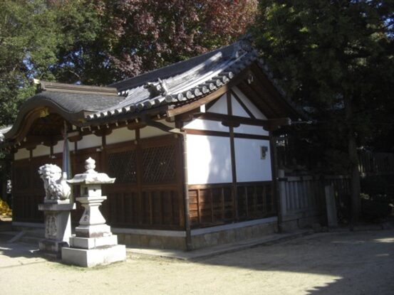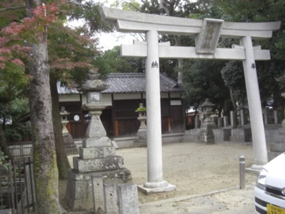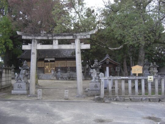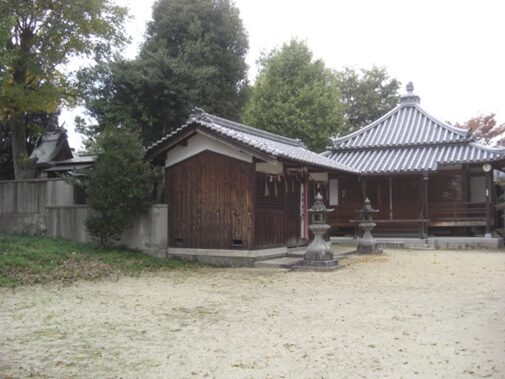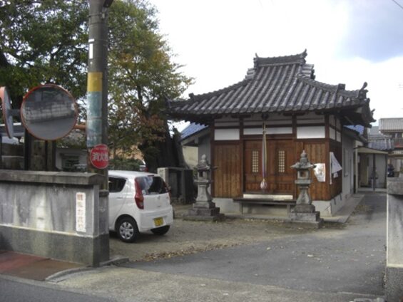 井戸野町で大和郡山市に入る。街道は真っ直ぐ進むが、交差点を少し右に入ると八幡神社