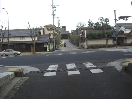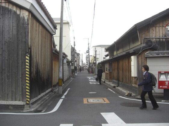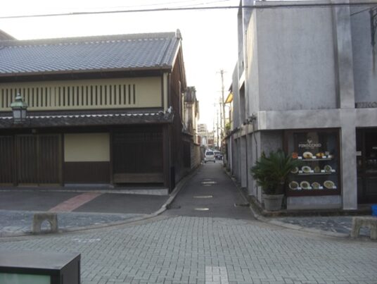 三条通りのT字路に出て、少し鍵になった東側の細い道を南に進む