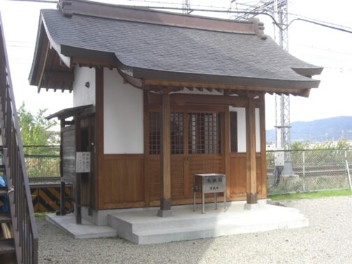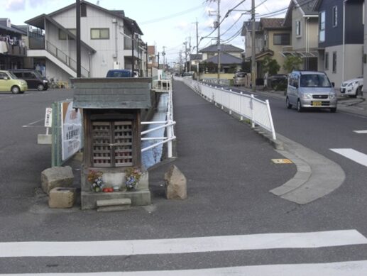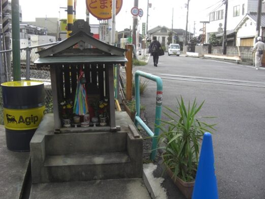踏切を渡る手前左に 祠