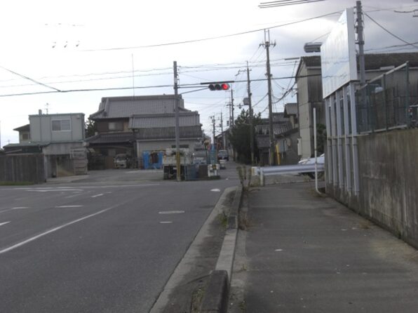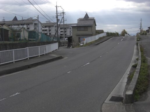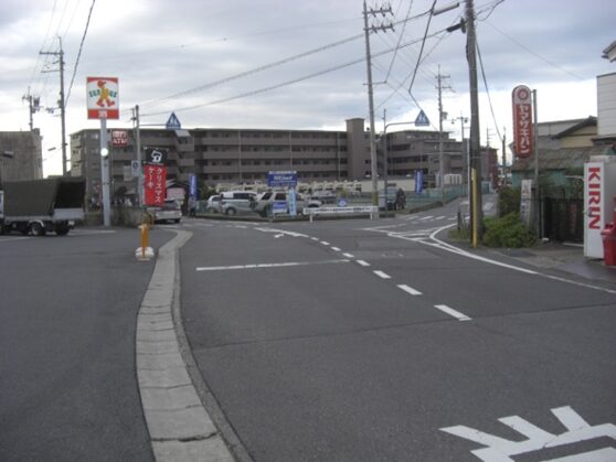 数十m先の左のサンクスの前で右の道を入る。右に済美南小学校を見る。左のおかもと歯科の先で