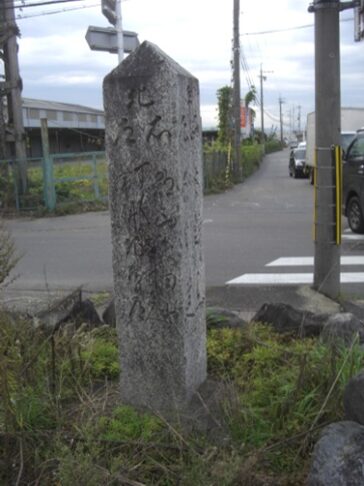 左に進む交差点を渡った左角に 道標