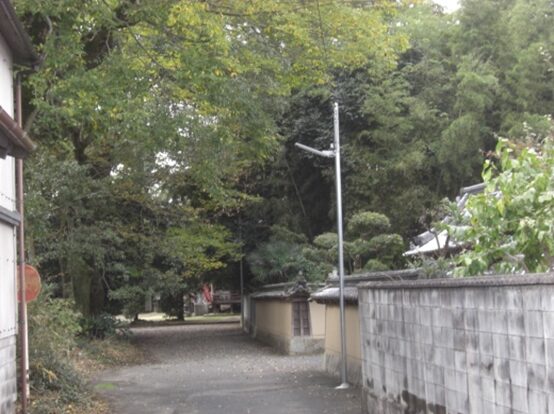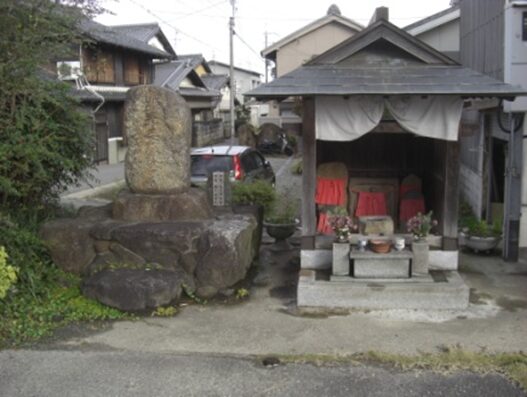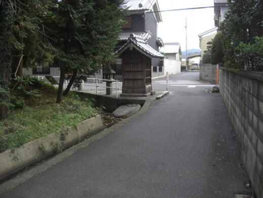 辻から300m程すすんだ地蔵堂を左に見て、その前の道を右(南)に折れる