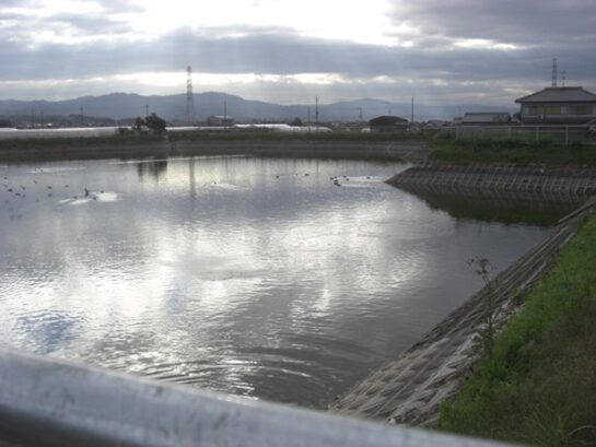 辻堂橋を渡ると天理市櫟本町に入る。橋の右手に白土池
