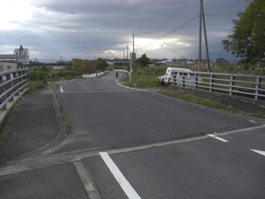 竹田旭橋を渡り川沿いに左に折れる