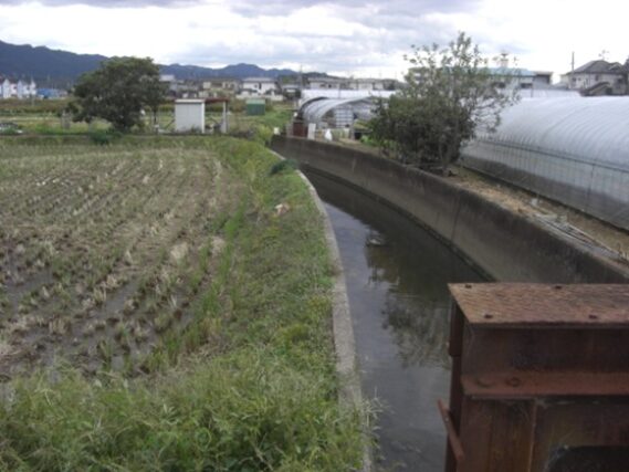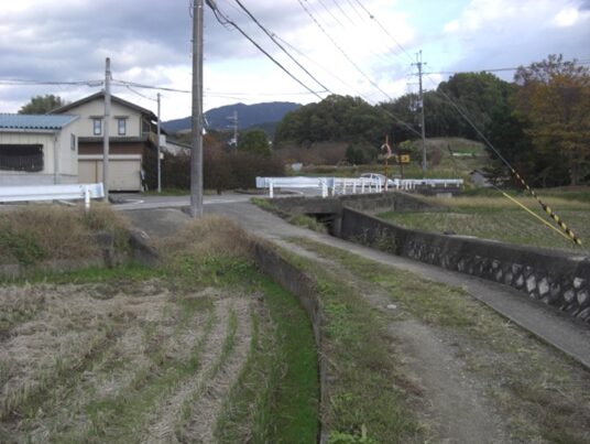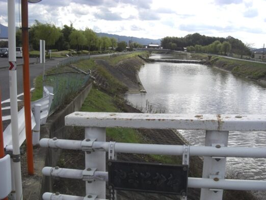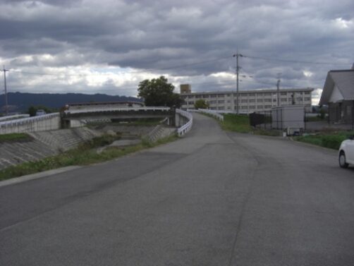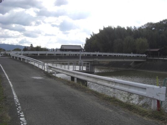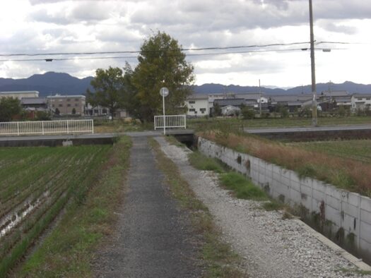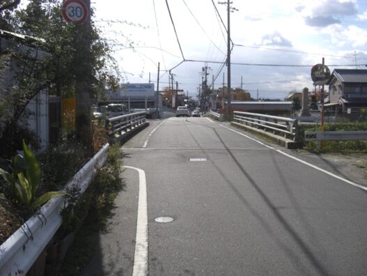 橿原市大田市町に入り、橋を渡り南下すると街道は分岐しているので、右に進み更に橋を渡る