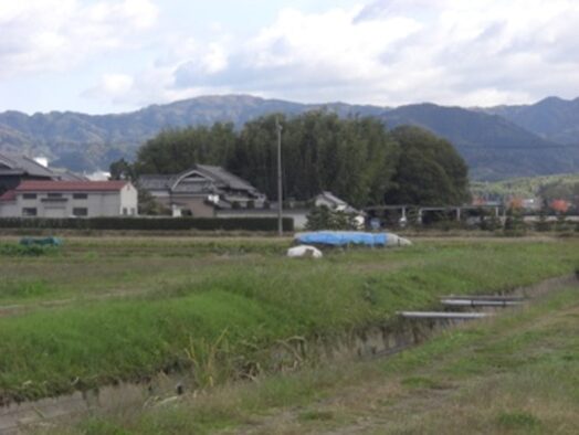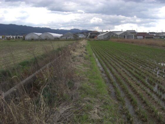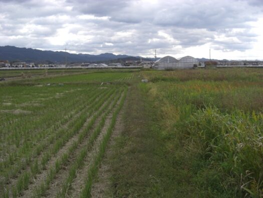 右に住宅をみながら畦道を南進