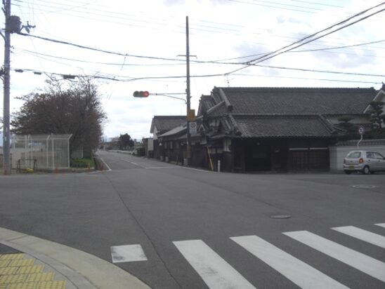 300m余り南に進んだ杉ヶ町の信号T字路交差点を右に折れる