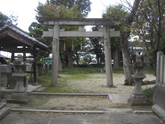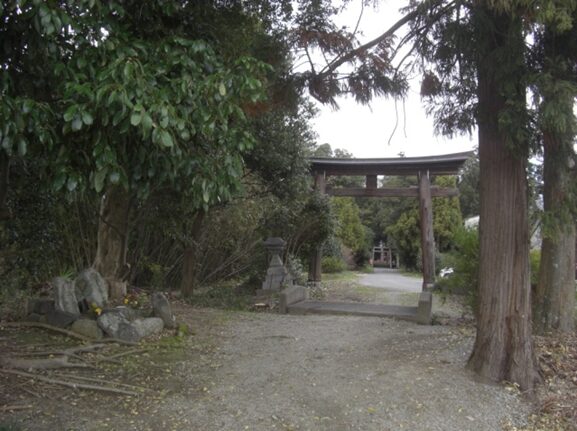 踏切を越えたところ右に 市杵島神社