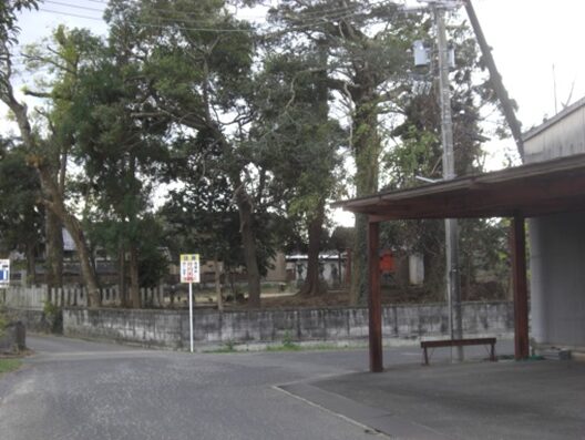 街道より左遠望に 素戔嗚神社の森