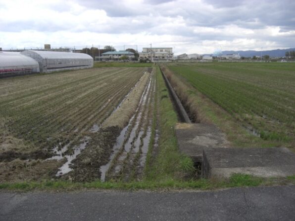 畦道を進むと左からの新道に合流して右へ橿原市南山町へ