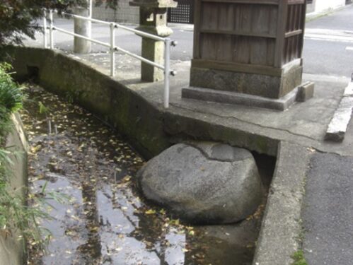 神社の前に 八王子神石