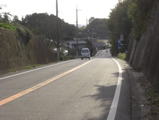 新しい舗装道に出て右に折れて坂道を上る