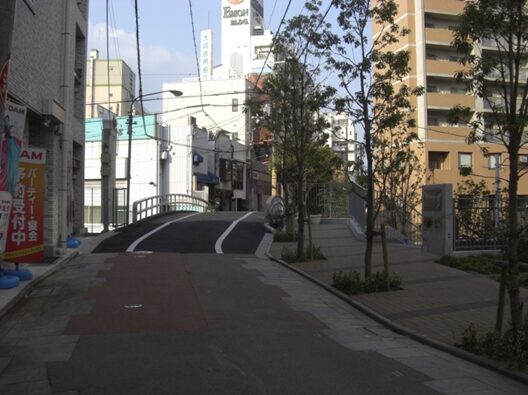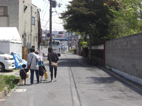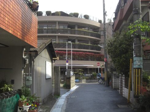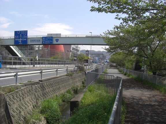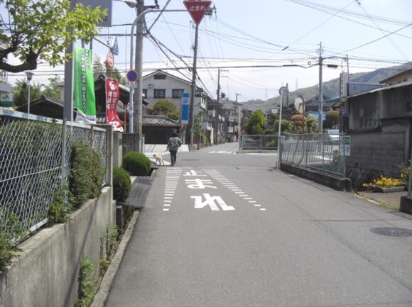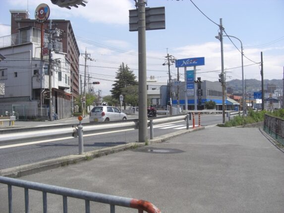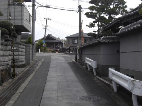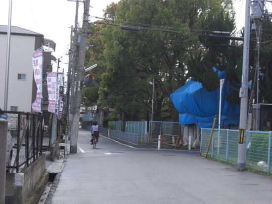 右に折れ旧道が復活したところで振りかえる、旧道はパナソニックの建物で完全に失われている