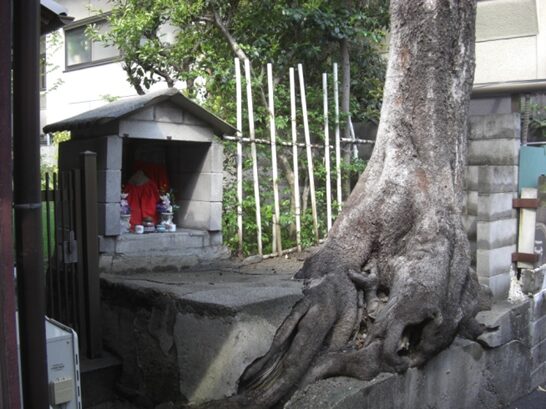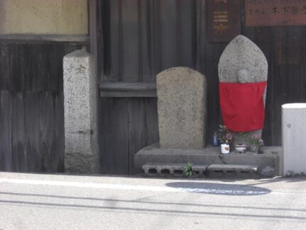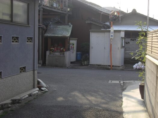 道は突き当たるので左に折れるその突き当たりにある 地蔵祠