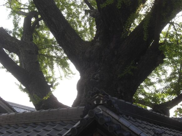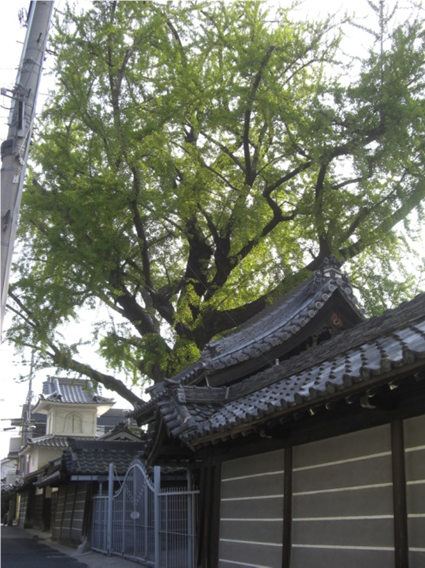 小川を越して国道163号線に合流する手前右手に星子幼稚園の隣に 本泉寺 と境内に大木の榎がある