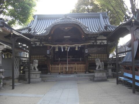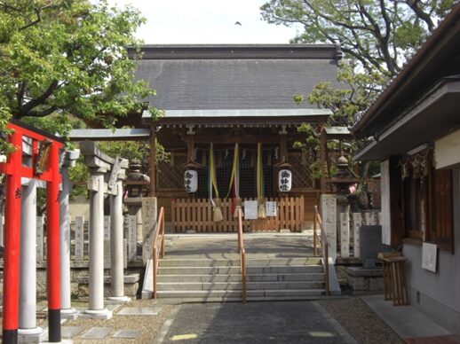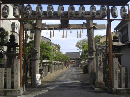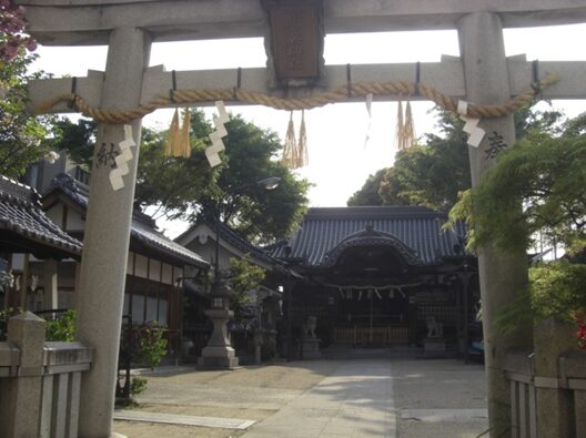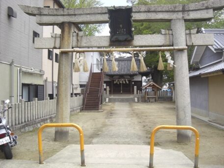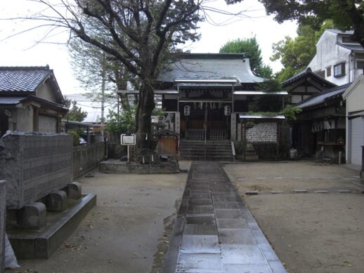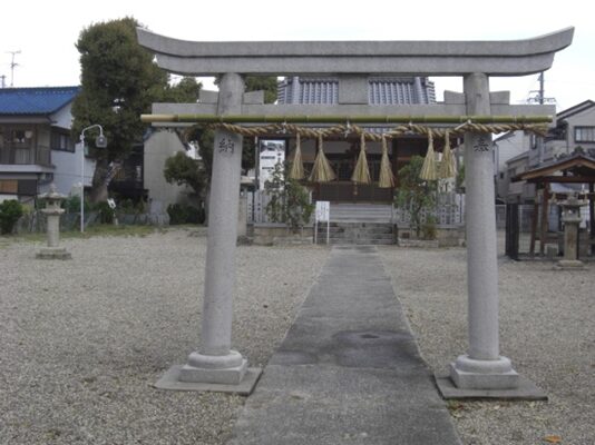 神社横、街道沿い右手に 茨田堤の石碑 が立っている