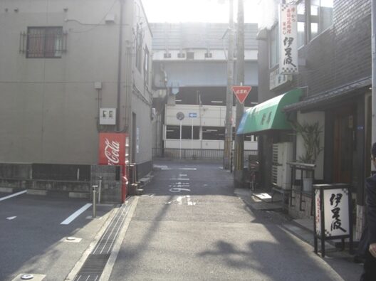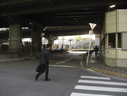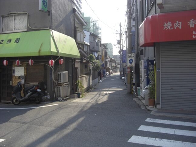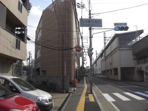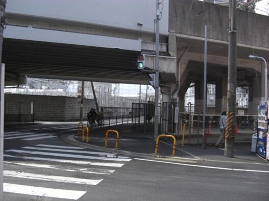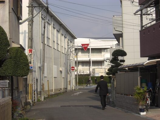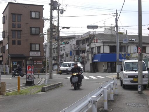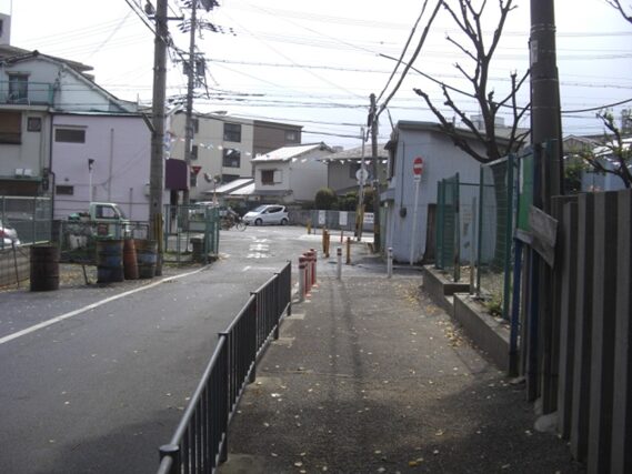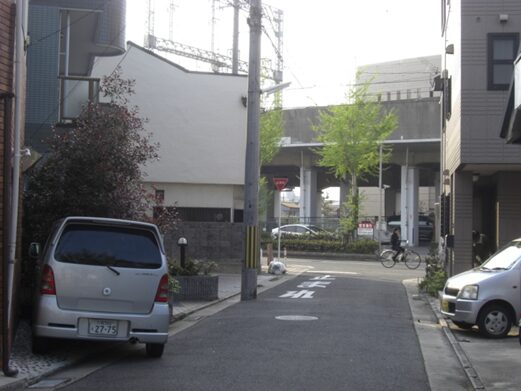 右斜め前に京阪古川橋駅が見えたところで、左斜めの道に進む