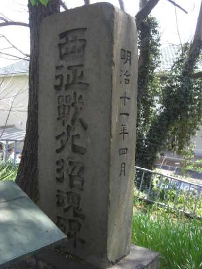 雁塔の隣に明治11年 西南戦争戦没者碑、大坂府下最古の忠魂碑