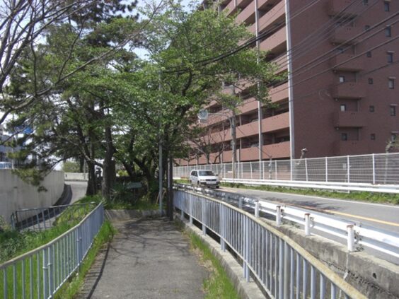 高架を潜り100m程進むと分岐道となり斜め右の道を進む
