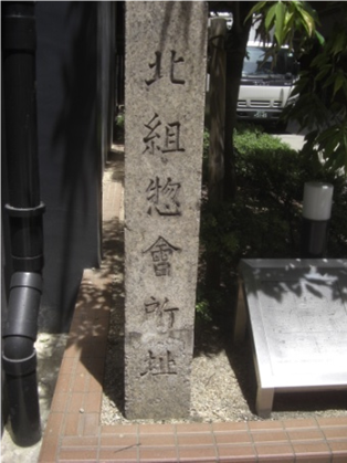 北組惣会所址江戸時代、大阪のまちは大川の北側の天満組・本町から北側の北組・本町から南側の南組という三つの地域からなっていて、大阪三郷と呼ばれていました。各組には、行政の中心となった惣会所があり、町人から選ばれた。惣年寄やその部下が幕府からのお触れの伝達や、税金の徴収といった仕事をしていた。この地域に北組の惣会所があった。