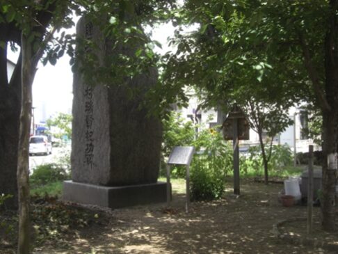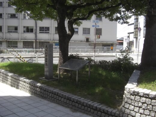 御霊神社が元1,594年現在の西区靭本町にあっことを後世に伝えるため、明治27年5月に、この碑が建てられた