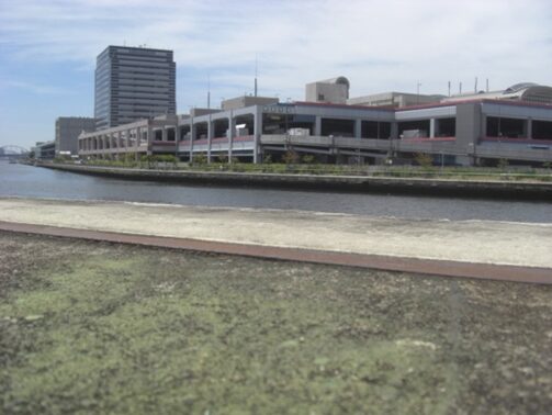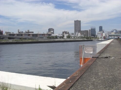 天保山運河の南側を望む