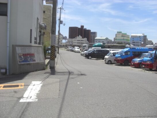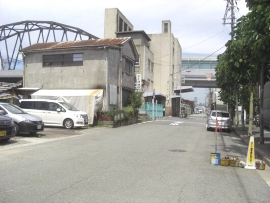 橋を渡ったすぐ先の信号交差点(築港東)を右に折れるが少し(寄り道)する