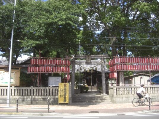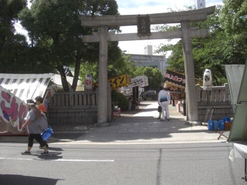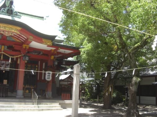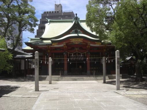 御堂筋を渡り一筋目交差点を超えた左にある 御霊神社