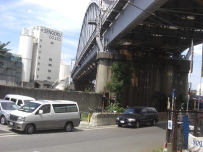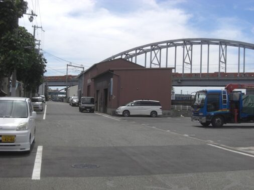 高架橋を渡り築港へ入る