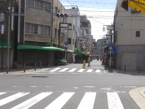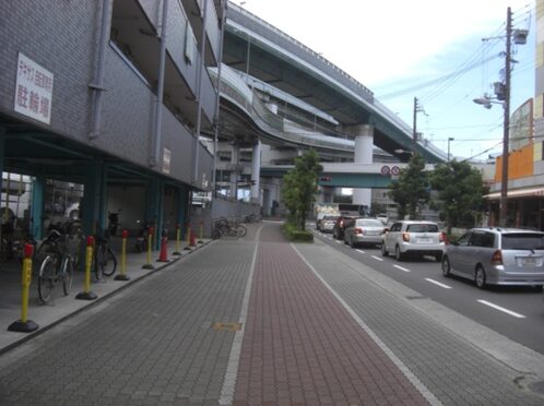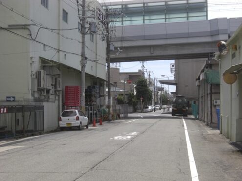 起点から東方向、大阪港駅の地下鉄駅方向