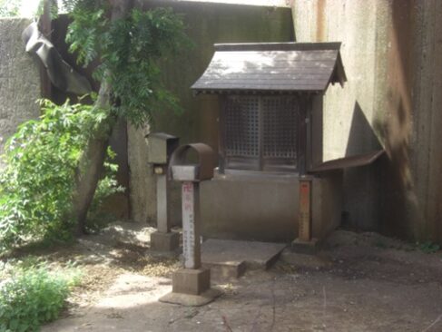 50mほど手前左の家の軒に 祠