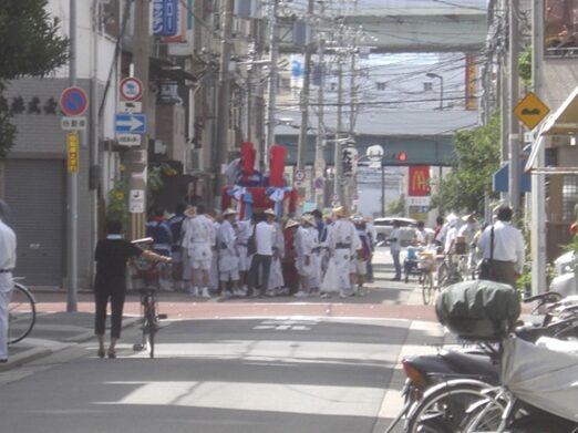 夏祭りの神輿、各地区から沢山の神輿が出ている