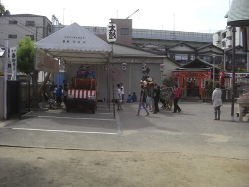 三津神社 子供たちが祭りの踊りの稽古をしているどの地区も祭り一色だ