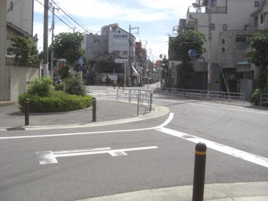 左に折れて広い道を右に折れる所右に折れた広い通り
