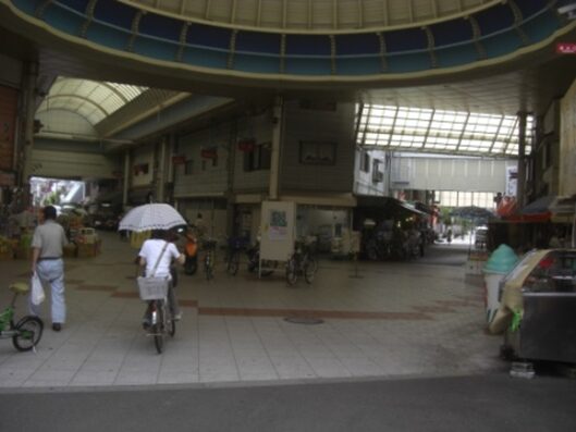 商店街アーケードの中ここも真っ直ぐの道を進む