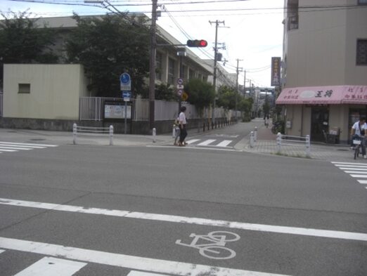 商店街を抜けると、左に港晴小学校を見て進む